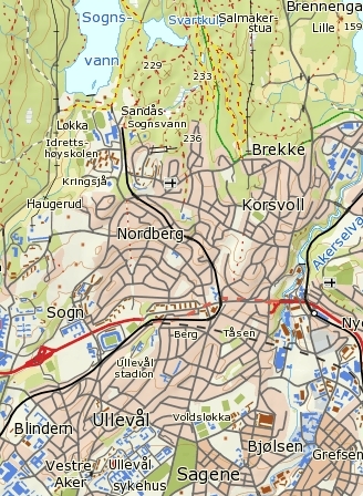 - i vest mot Blindernveien og Sognsvannsbekken