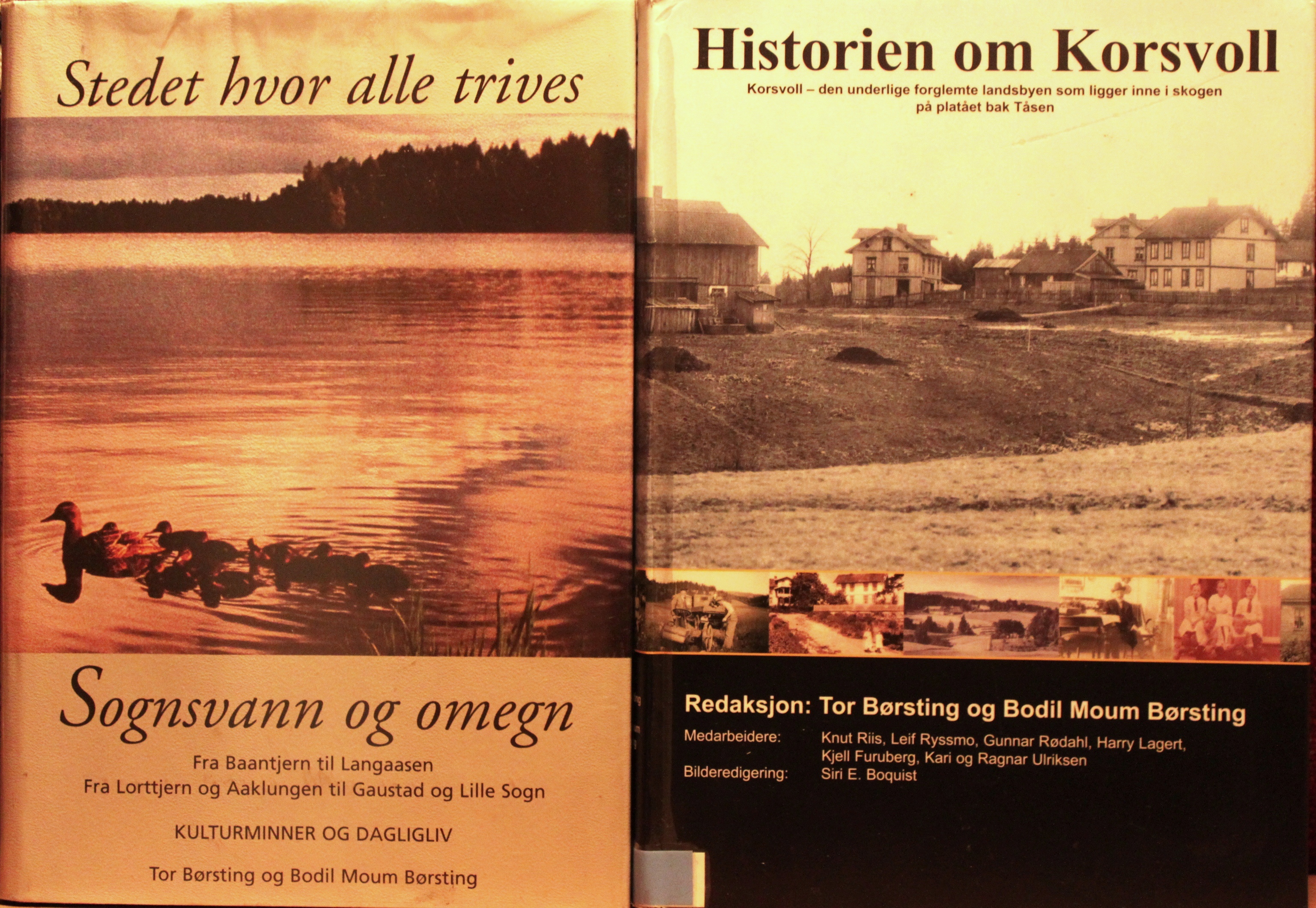 Bodil og Tor Børsting: Stedet hvor alle trives – Sognsvann og omegn, 2000, nytt opplag 2011- Bodil og Tor Børsting: Historien om Korsvoll, 2003