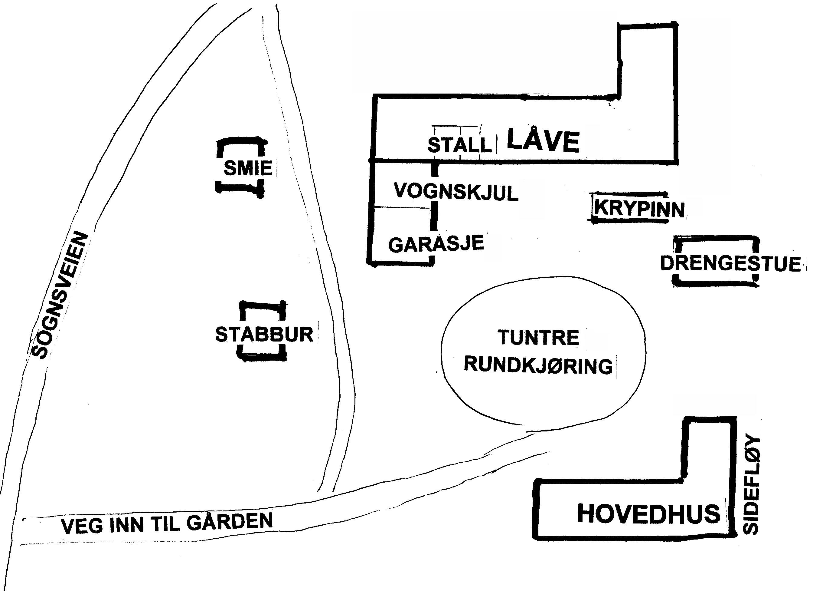enden av gårdsplassen. Arbeidsfolk fra gården var også med på å bygge Sognsveien, jeg tenker da på den gamle Sognsveien, dvs. før bilene kom inn i bildet. Den gang benyttet man hest og vogn. Arbeiderne på Sogn Gård var fra forskjellige kanter av landet og var vant til å ta i et tak når det gjaldt. Når de møtte til steinkjøring på den gamle Sognsveien, hadde de snekret en ekstra grime, dvs. en karm øverst på kjerra slik at det ble plass til mer stein. Dette godtok ikke de andre arbeiderne, og karmen ble straks slått i stykker.
