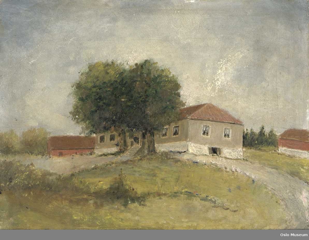 “Gården fulgte Sognfamilien fra 1798 til 1887. I 1896 ble den solgt til Kristiania kommune. I dag er bare våningshuset (oppført ca. 1800, tilbygd i 1830-årene) bevart,…”
