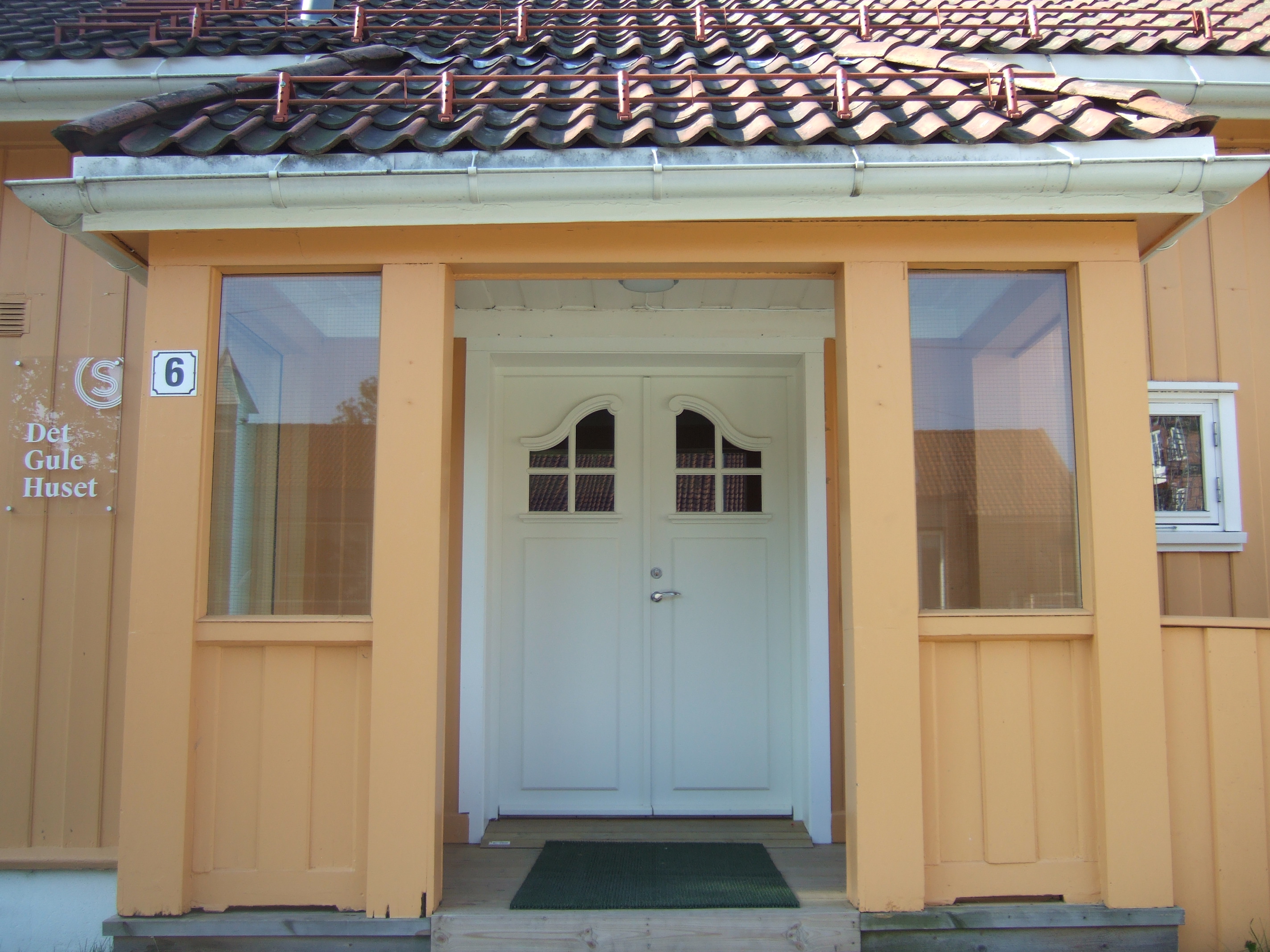 Inngangsdøren, som er en dobbeltdør, har to karakteristiske, litt “bedrøvede” vinduer med “tunge øyelokk”, som for en liten gutt godt kledde et hus med tilårskomne besteforeldre og grandtante. I min barndom lød ikke dørklokken elegant ding-dong, men hadde en litt brummende, “skrøpelig” lyd. Det tok gjerne litt tid før døren ble åpnet, som regel av farmor. Farfar var tunghørt og oppfattet ofte at vi var kommet, først da han fra langbenken på kjøkkenet så bevegelser i entreen. Da så han opp og smilte lunt. Så kom tante Kirsten ut fra sitt rom, de siste par årene med stokk.