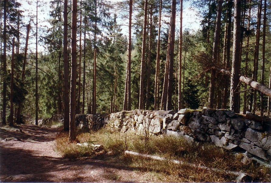 Det fortelles at steingjerdet, eller svenskemuren, ble bygget før 1814 av svenske krigsfanger fra krigen 1807–1814 mellom Danmark/Norge og Sverige. Tor Børsting mener at steingjerdet avgrenser den nordlige delen av eiendommen til Lille Sogn gård (fra 1810 Nordberg gård) fra naboeiendommene. Gårdens eiendom strakk seg i syd helt ned til Rektorhaugen. Eier og bruker av gården på denne tiden var Ole Anderssøn. Lille Sogn grenset til eiendommene Østre Sogn, Sogn gruve, Nordre Taasen, Søndre Taasen, Berg gård, Skjerven gård og Brekke gård. Steinmuren strekker seg over en strekning på omlag 3,5 km, og den har to grener. Den østlige starter 150 meter rett øst for Svartkulps østlige hjørne. Grensen går i hovedsak i sørøstlig retning fram til kraftledningen, 100 meter rett vest av skytterbanen i Maridalen (ved plassen Pølen), så går gjerdet sydover langs kraftledningen til øst av Grindajordet, langs Øvre Langåsvei og ned langs Havnajordet til Carl Kjelsens vei. Grensen gikk videre sydover langs Havnabakken og grenset her mot plassene Bergshavnen og Bergsengen.