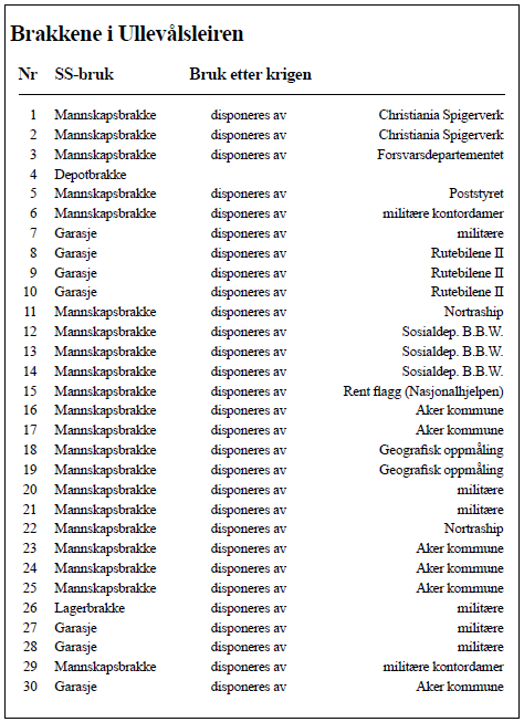 I arkivet etter DK Viken, eske 38 finnes god dokumentasjon på den kniving som det i mange tilfeller var blant mulige leietakere. Ofte finner vi også sprikende interesser mellom de ansvarlige myndigheter. For å gi et bilde av hvordan situasjonen utviklet seg, viser vi til en oversikt over leietakere i mai 1950. Ullevålleiren var på dette tidspunkt ikke lenger et militært forlegningsområde.