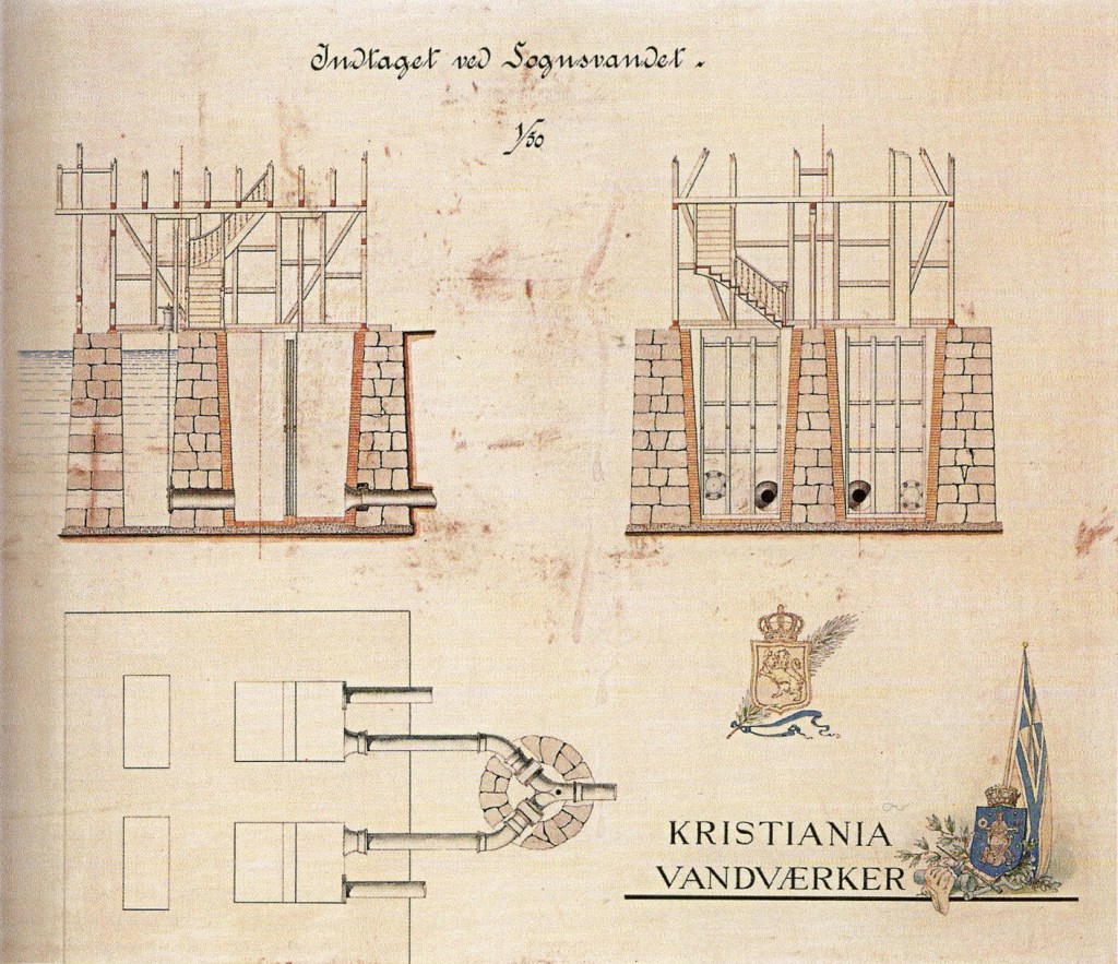 Kristiania vannverk begynte raskt med planleggingen av et renseanlegg for vannet fra Sognsvann. Renseanlegget sto ferdig begynnelsen 1880-årene. Som det fremgår av de gamle skissene, var huset bygget på “grunnmur” som stod i vann. I “kjelleren” var det fire rom som var forbundet med et rørsystem utstyrt med et lukkesystem til å styre vannet. Råvannet ble ført inn i første rom som var fylt med fin pukkstein. Dermed ble store partikler holdt tilbake. Deretter gikk vannet inn i neste rom som var utstyrt med en stor sil, før det gikk inn i vannrøret mot abonnentene.