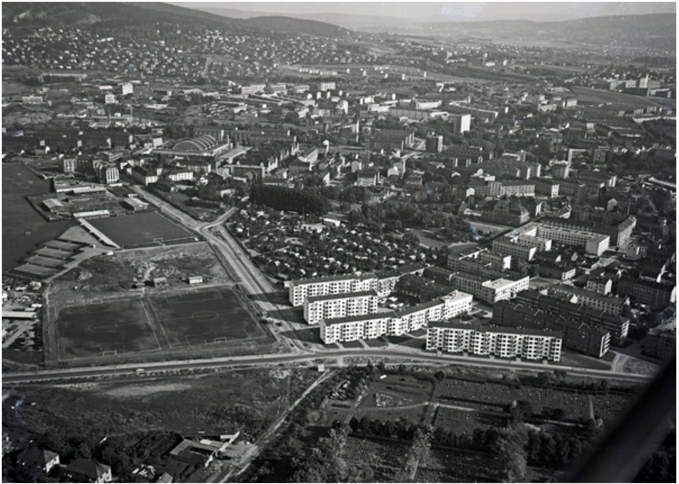 For å få tomt til Sandefjordgata 1 måtte “husvildebarakk” 1 og 2 rives. Litt senere ble det opparbeidet to fotballbaner langs det som skulle bli Uelandsgata. Disse lå på omtrent samme sted som fotballbanene ligger i dag.