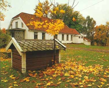 Nåværende gårsdtun med våningshus fra 1836. Låven ombygd etter brann i 1913.