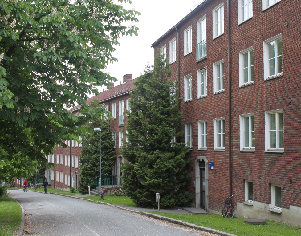 En av de to første husrekkene i Sogn studentby. Disse stod ferdig til vinter-OL i 1952. Foto: Trond Smith-Meyer